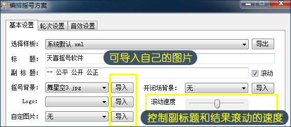【基本设置】可自定义主、副标题、背景图、背景乐、logo。背景图大小应在5M以内。