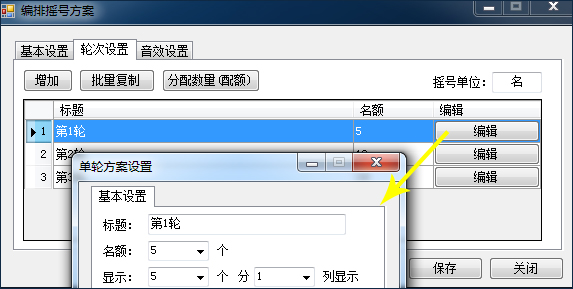 【轮次设置】标题不能为空,不能重复,可添加修改或删除,以及批量复制