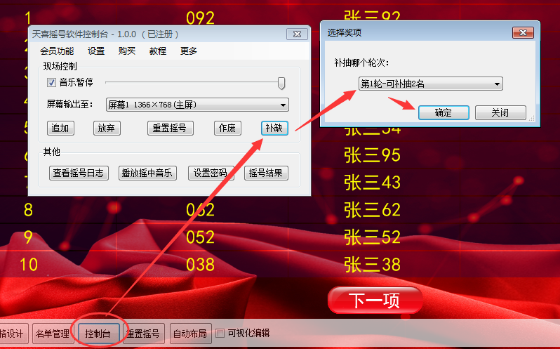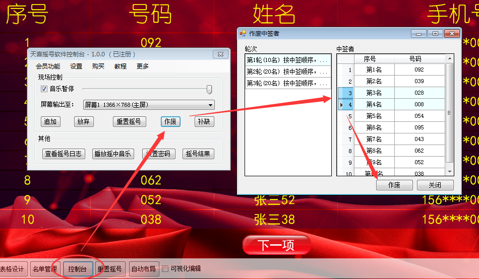 【作废、补缺】在摇号过程中可作废某轮的某些名额。作废后可马上补缺。