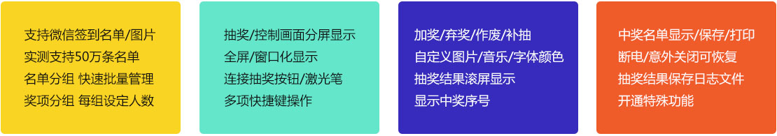 一款适用于年会抽奖、婚礼抽奖、游戏抽签、赛事排位等各类活动的抽奖软件;支持windows xp/vista/7/8/10 等操作系统。